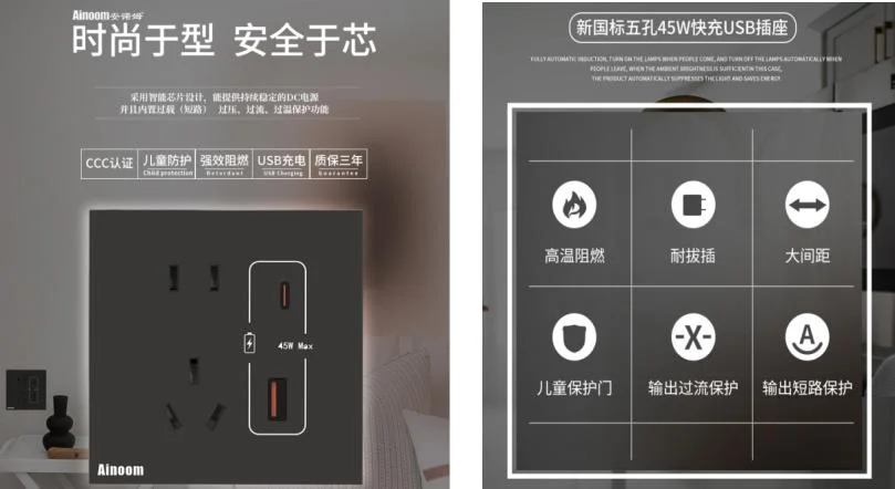 USB五孔插座面板作为家居电力供给的关键设备,其安全性和稳定性至关重要。浩博特科技股份旗下安诺姆(Ainoom)的USB充电五孔插座面板在设计上充分考虑了用户的安全需求,采用质优的材料制造,具备过载保护、过热保护等多重安全功能,有效保障家庭电路的稳定运行。无论是家庭使用还是商业场所,都能放心使用,让您的电力供给更加可靠!