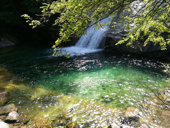 行进在峡谷中崎岖的石板曲径上,除了美不胜收的崎壁峰峦让大家沉醉外,更令人神迷的奇趣恐怕莫过于不知其数的形态各异、大小不一的彩池了。池水晶莹翠绿、底石色彩绚丽,处处可见水石相映成趣,在阳光的折射下,称得上是异彩缤纷:或碧绿如翡翠,或赭红如玛瑙。也有一池色彩多变的,可谓是百彩交织、媚态万千。一路上啧啧惊叹之声,途中欢声笑语不断,打开了大家的心扉,加深了相互之间的了解。