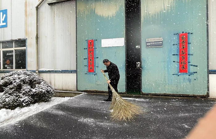 经过两个多小时的奋战,大家终于将公司的主要出入口、主干道等地的积雪全部铲除,为员工和来访客人开辟了一条洋溢着温情的通畅之路。虽然大家的衣服、鞋子都弄湿了,也出了一身的汗,可看着眼前的成果,大家都很有成就感,每个人的脸上都洋溢着开心的笑容。