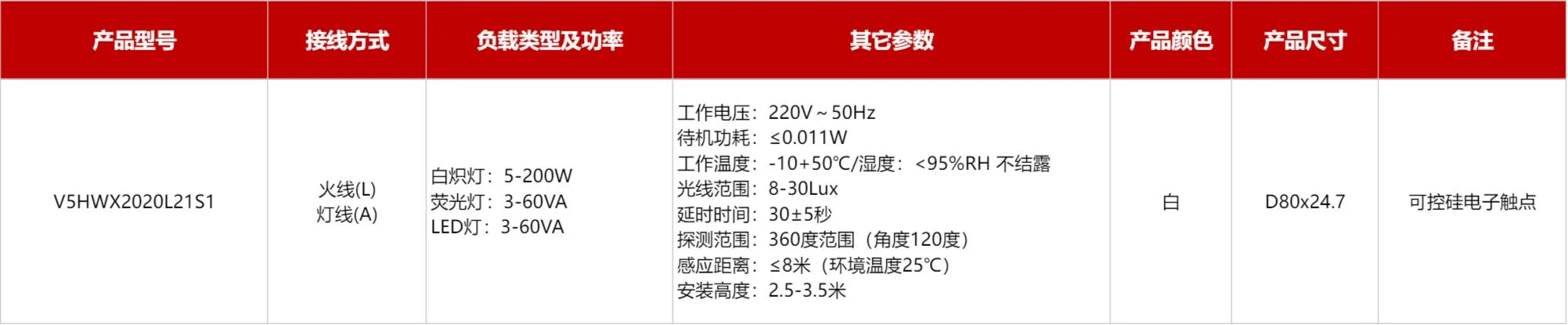 红外感应开关(可控硅二线)----产品型号:V5HWQ2026L21S1